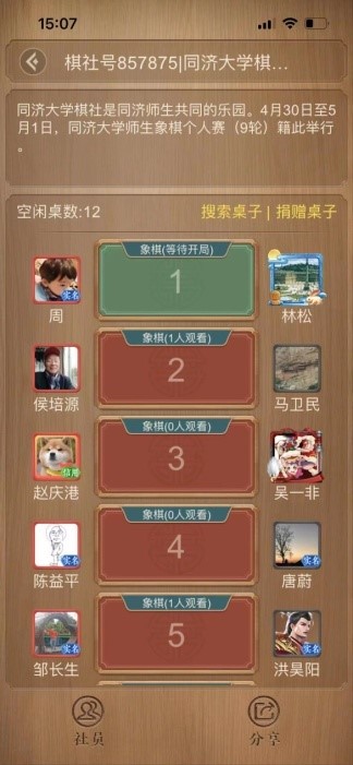 4月30日至5月1日,由校工会主办,同济大学教工象棋协会承办,学生棋类协会和iClick爱点击集团公司协办的2022年同济大学“爱点击杯”师生象棋网络个人赛在天天象棋同济大学棋社举行。