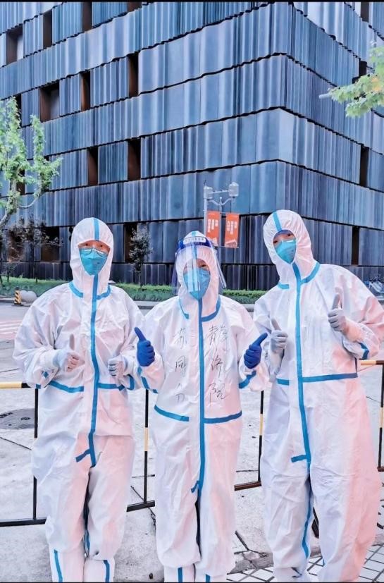 同以前专职做医生不太一样,现在的我们还扮演着服务员、搬运工、客服等多种角色。每一个人都是多面手,每一个团队都是“穿插连”。大家互帮互助、随时补位,不分你我,无论是穿脱防护服隔离衣、个人消杀,还是送物资、采集核酸、测量体温,又或是隔离区消杀、清理医废、心理疏导等一系列工作,都互相分享经验,配合得越来越默契,工作效果也越来越好,校医院江红玮医生一边回复线上医疗问题,一边介绍说。