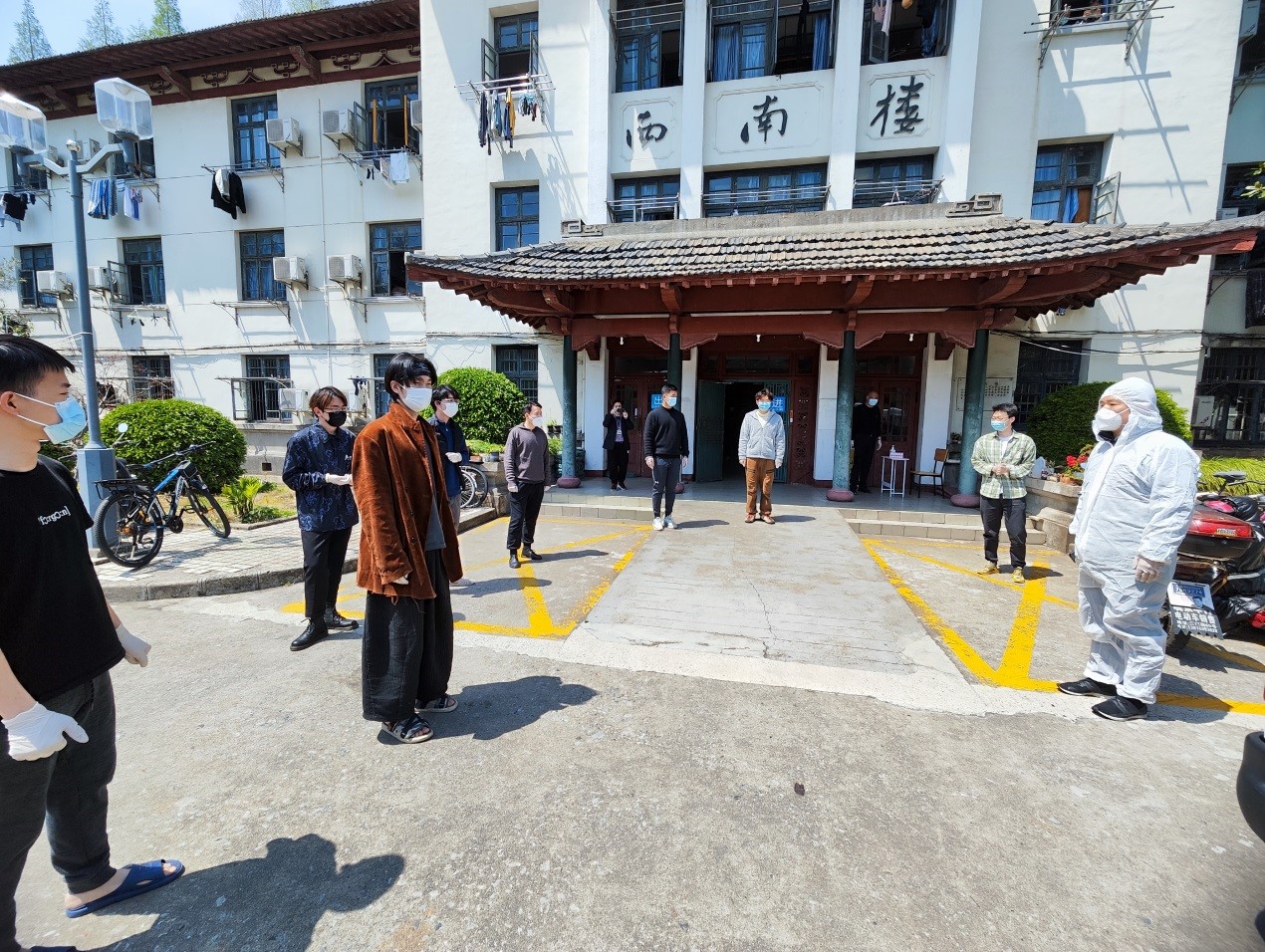 西南一宿舍门口,一位“大白”和同学亲切交流,这是学院院长李翔宁。在得知要为学生送餐的任务之后,留守校内一个半月的李翔宁也积极主动报名,化身“大白”,加入到这一支任务艰巨而光荣的队伍当中。“别的没啥,就是希望能够为我们的学生多做一点,大家一起努力,同舟共济,共克时艰”,李翔宁笑着说。