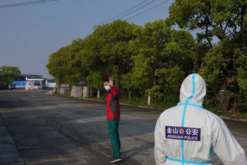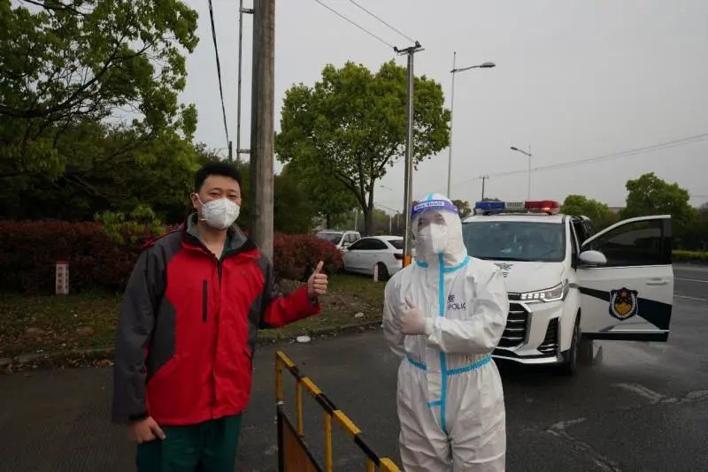 4月21日6时50分,金山天华路方舱医院门口,刚刚走下班车准备进舱上班的附属同济医院医疗队队员、急诊抢救室护士长刘建,疾步走向一位站在执勤警车前、胸前贴着警察标识的“大白”,一见面他们互相唏嘘:“你一点没变化嘛!这么多年一直在锻炼、身材保持的不错嘛,退伍不褪色!” “很想拥抱一下!可惜现在还不是时候……”“大白”是刘建十年前一起退伍的战友加好友、金山区公安局民警汤佳斌,而这次重聚距离上次相逢整整间隔了十年。