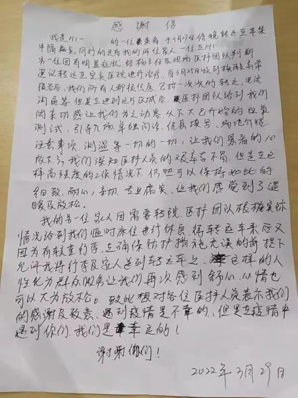 一封来自世博方舱医院的感谢信