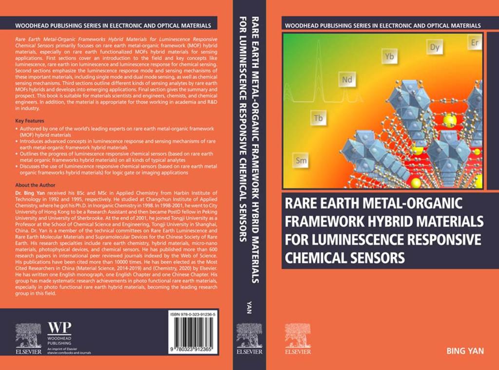 日前,我校化学科学与工程学院闫冰教授独立撰写的英文学术专著Rare Earth Metal-Organic Framework Hybrid Materials for Luminescence Responsive Chemical Sensors在Elsevier出版社正式出版,系统总结稀土-MOFs杂化材料的光响应化学传感器最新研究进展。这也是继2017年独立撰写英文专著Photofunctional Rare Earth Hyrid Materials在Springer出版社出版之后,闫冰教授的又一本学术力作。
