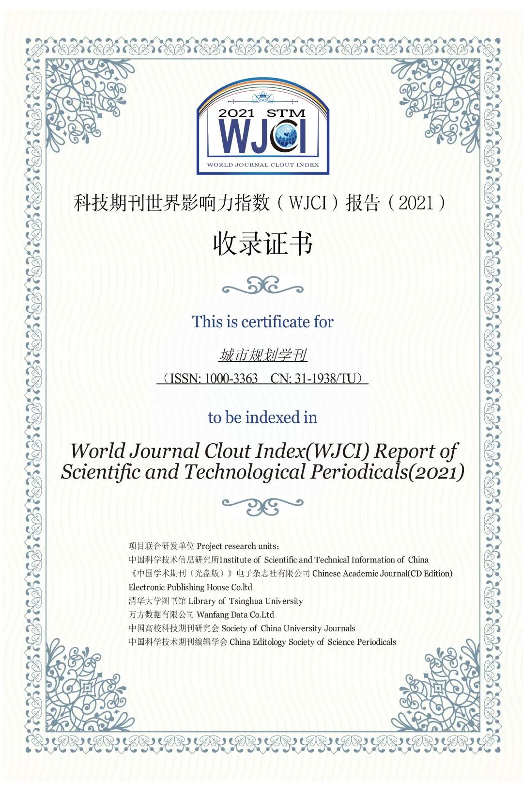 《城市规划学刊》连续入选《科技期刊世界影响力指数(WJCI)报告》