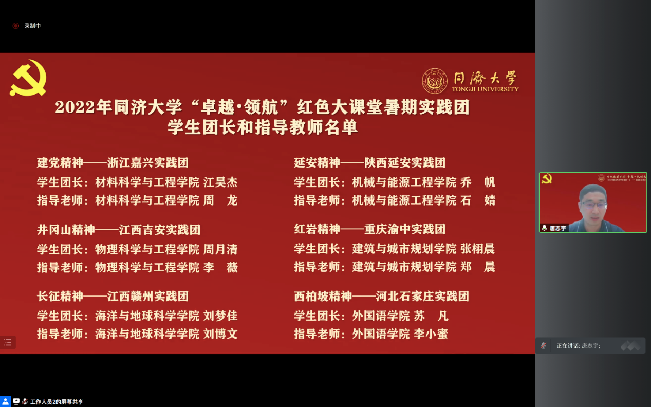 7月5日,同济大学学生党建“七·一”主题党日活动在线举行。校党委副书记彭震伟,党委学研工部、党委组织部、党委宣传部、校团委负责人及各学院党委副书记、学生党支部书记、毕业生党员及新入党党员代表参加活动。