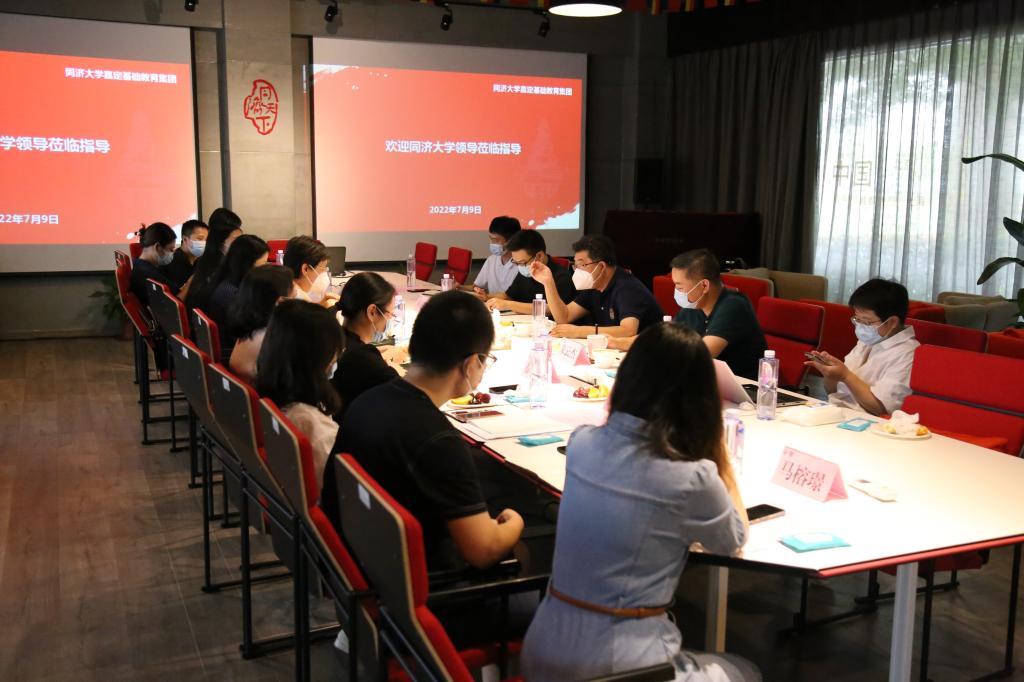 随后,吕培明听取了附属实验中学、附属实验小学和附属嘉定幼儿园等单位负责人就办学理念、队伍建设、课程教学和特色打造等近期办学情况进行的专题汇报,并与学校管理团队和青年教师代表座谈交流。他对同济大学嘉定基础教育集团学校管理团队团结一致,主动作为,全力以赴办好人民满意的教育给予肯定,对集团下阶段发展提出工作要求:一是要在全方位做好疫情防控各项工作的同时夯实学校教学质量,保障学校高起点办学,高水平发展;二是进一步总结近年来办学经验,突出集团学校各自办学特色的同时,积极凝练同济基础教育育人理念;三是充分用好大学在课程、师资等各方面资源,彰显大学附属学校大中小学贯通培养优势。