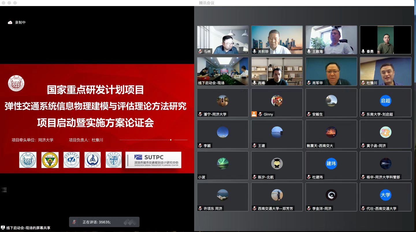 7月8日,由同济大学牵头组织、我校杜豫川教授作为首席科学家的国家重点研发计划“综合交通运输与智能交通”重点专项“弹性交通系统信息物理建模与评估理论方法研究”项目启动暨实施方案论证会以线上线下相结合的方式在沪召开。