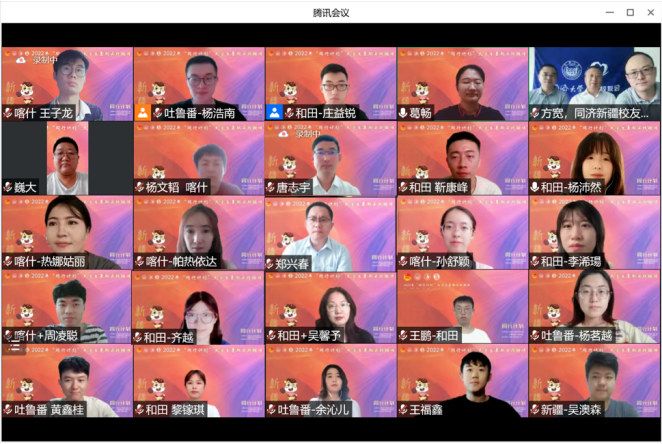 为了帮助实践同学提高政治站位,提升岗位工作能力,了解实践安排,尽快适应实践工作,进一步深化同学对新疆各实践地的认识,了解新疆地区的人才政策,确保2022年“同行计划”大学生暑期实践锻炼在新疆地区顺利开展并最终取得实效,7月10日下午,“青春同行,济梦边疆”2022年“同行计划”新疆实践团行前培训会在线召开。