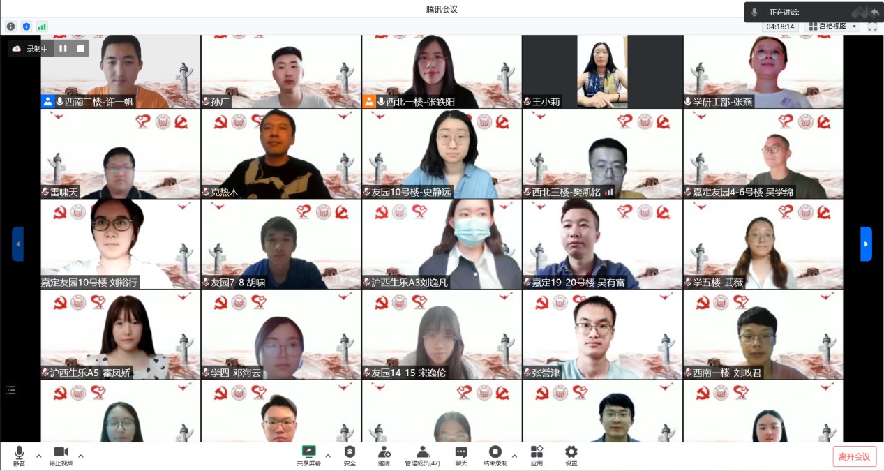 来自四平路校区、嘉定校区、沪西校区、沪北校区的40余位社区辅导员,针对本学期的社区工作的实际情况,从社区学生概况、战“疫”经验分享、开展活动情况、个人感想与展望等方面进行了汇报。述职评议回顾了过去一学期社区辅导员在疫情防控中作出的突出贡献,总结分享了好的工作经验和方法,也提出了对下一学期的工作思考和规划,更充分展现了社区辅导员队伍的凝聚力和战斗力。