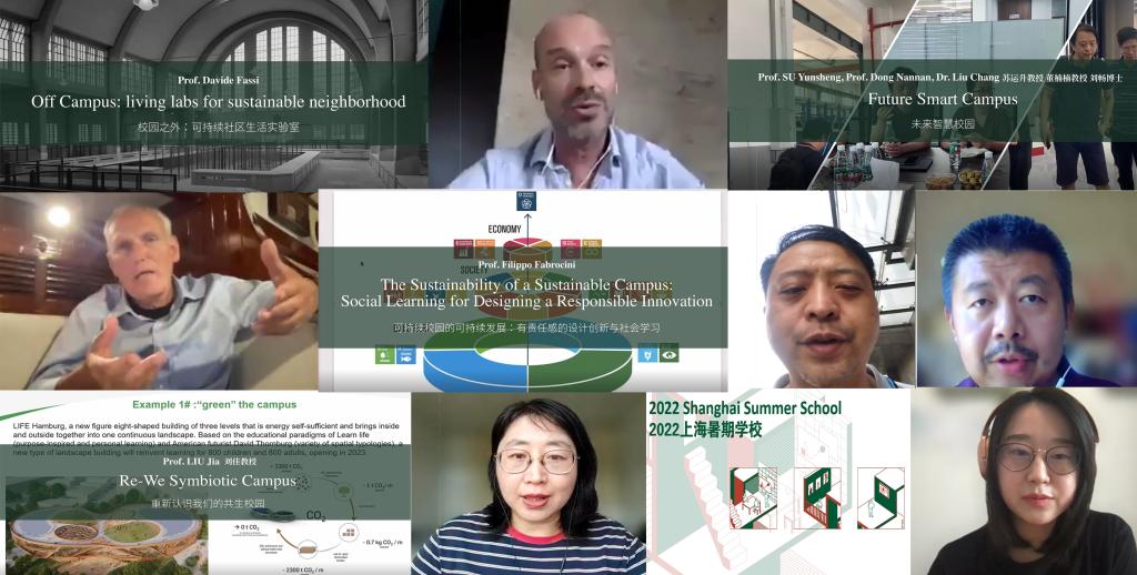 2022上海暑期学校(欧洲项目)以“可持续校园引领未来社区构建”为主题,通过国际的跨学科学习和共创,探索可持续校园的构建对于未来社会发展的作用。此次暑期学校吸引了来自德国、意大利、法国、英国、中国等国内外高校共50多名中外学子参与学习,邀请了20多位来自于同济大学、复旦大学、上海政法学院、都灵理工大学、米兰理工大学以及业界的中外师资授课,期间开展了4个平行工作坊、10场主题讲座、7次汉语及中国文化相关课程和3次城市探访体验,授课达200多个课时。