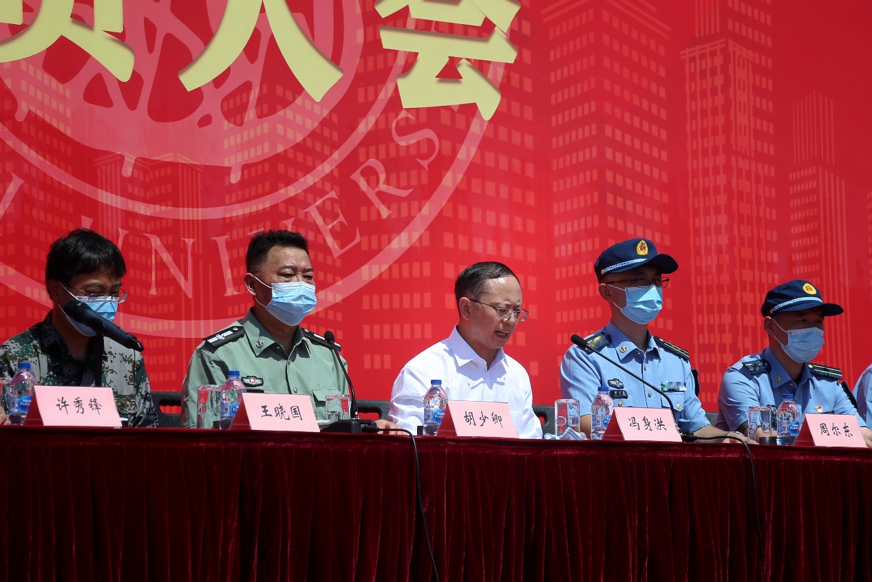 彭震伟作军训动员讲话,对全体参训学生提出三点希望:第一,要在思想上高度重视军训,以解放军为榜样,学习他们热爱祖国、忠于人民、艰苦奋斗、勇于奉献、顽强拼搏的精神,把所学到的优良品德和作风贯穿到今后的学习、生活和工作中;第二,要严格遵守防疫措施,着眼“零感染”“无传播”目标,在参训过程中听从指挥,服从纪律,确保军训工作平稳有序高效开展;第三,要增强安全意识,注意劳逸结合,按时休息,合理饮食,发扬“同舟共济,自强不息”的精神,使军训经历成为大学生活的美好回忆和受用一生的宝贵财富。