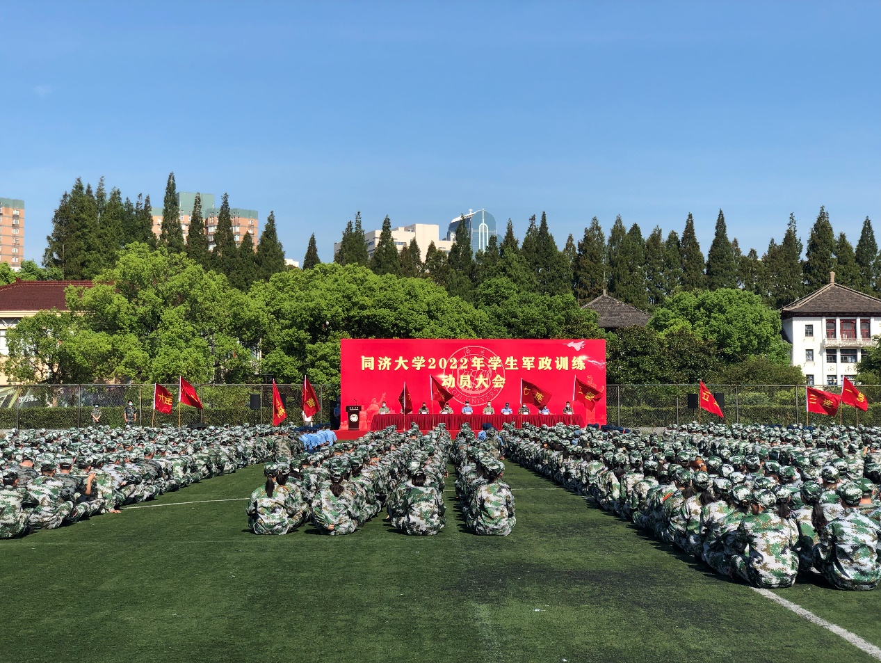 8月19日,同济大学2022年学生军政训练动员大会分别在四平路校区人工草坪和嘉定校区足球场举行。校党委常务副书记冯身洪,党委副书记、军训工作领导小组组长彭震伟,同济大学军训旅参谋长周尔东,军训旅一团团长周洵,军训旅一团参谋长朱新亚,军训旅二团团长朱炵宇,军训旅二团参谋长刘明,党委学研工部、武装部负责人等出席活动。