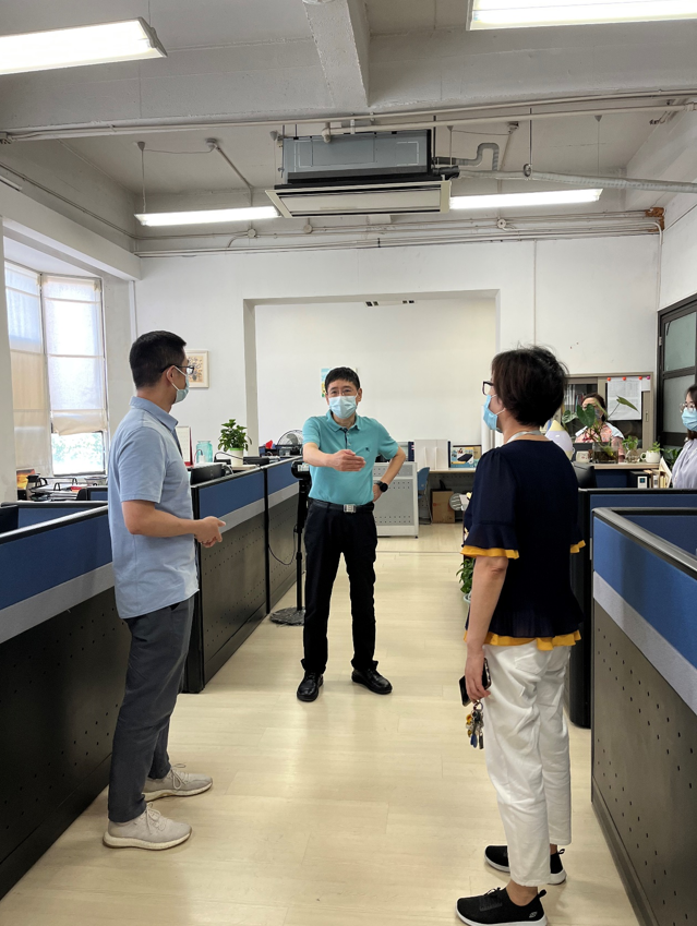 吴广明首先来到图书馆疫情防控重点区域,深入了解图书馆疫情防控措施,仔细询问了图书馆开放的准备情况,并代表学校对图书馆员工表示亲切的关心和问候。他还向大家传达了暑假期间学校中层干部综合治理能力提升专题研讨班(第三期)的相关精神,希望图书馆进一步发挥在立德树人根本任务中的重要阵地作用,助力学校的人才培养工作,全面提升图书馆的服务水平。他对图书馆的疫情防控工作、开放准备工作以及安全保障工作给予了充分肯定,并指出当前疫情形势依然十分严峻,图书馆是校内人流密度较高的公共场所,必须严格遵守各项疫情防控制度,做到有制度、有措施、有记录、有结果,科学谋划,统筹推进疫情防控和日常工作有序开展。