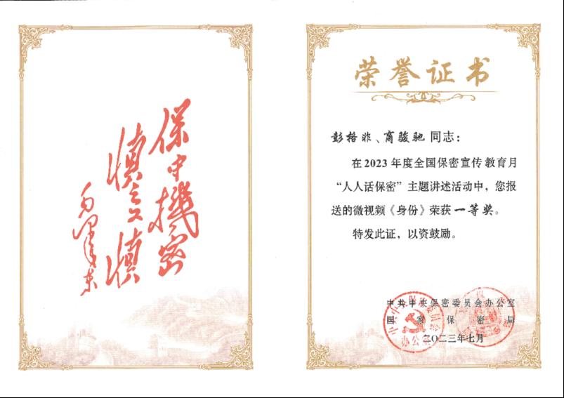 今年全国保密宣传教育月期间,中央保密办(国家保密局)组织开展了“人人话保密”主题讲述活动,我校艺术与传媒学院本科生彭格非、商骏驰拍摄制作的微视频作品《身份》分别荣获全国一等奖和上海市一等奖,学校保密办获评优秀组织单位。