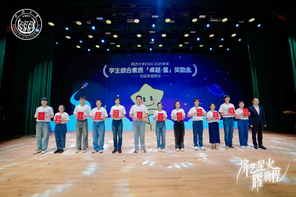 晚会期间,两项重要仪式同步举行,为活动注入更多正能量与使命感。作为学校“卓越·星”计划(五个一百)的重要激励载体,2024-2025学年共有165名学生获评学生综合素质“卓越·星”奖励金。郑庆华为12名校级年度荣誉称号获奖学生颁奖。他们或在广泛的图书阅读中拓宽视野,或在与师生的深度交流中汲取成长力量,或在前沿讲座学习中捕捉思想火花,或在多样地标探访中践行知行合一,或在多元校园实践中锤炼实干本领,更有在综合发展领域展现全面实力的佼佼者——每一位获奖者的风采,都成为“卓越”的生动注脚。