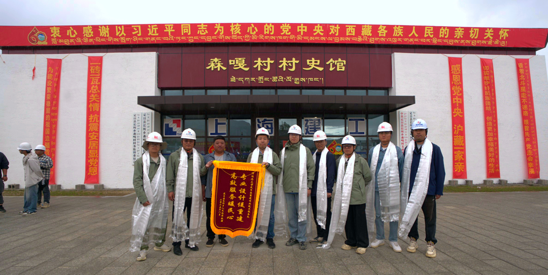 “专业设计促重建,高效服务暖民心”,在森嘎村交房之际,长所乡人民政府为同济团队送来了鲜红锦旗,献上了洁白的哈达。村民们还紧紧握住同济队员们的手,连声说着“扎西德勒”。