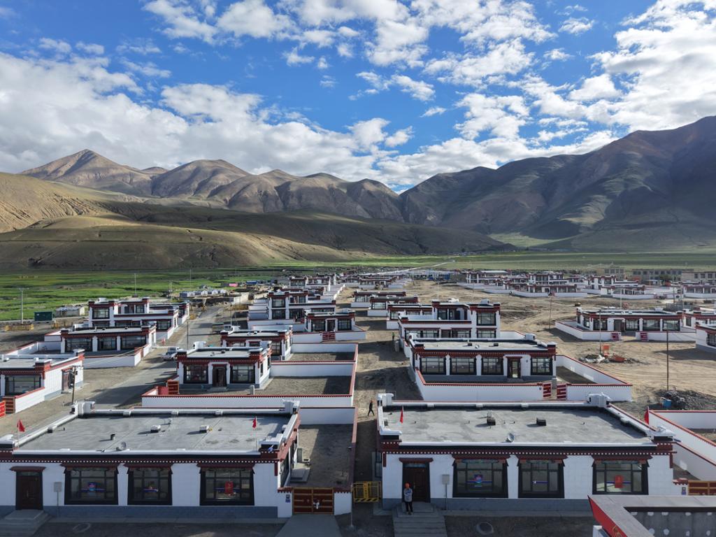在西藏定日县森嘎村拍摄的“定日6.8级地震灾后恢复重建民房首批入住仪式”(无人机照片) 新华社记者 姜帆 2025年8月15日摄