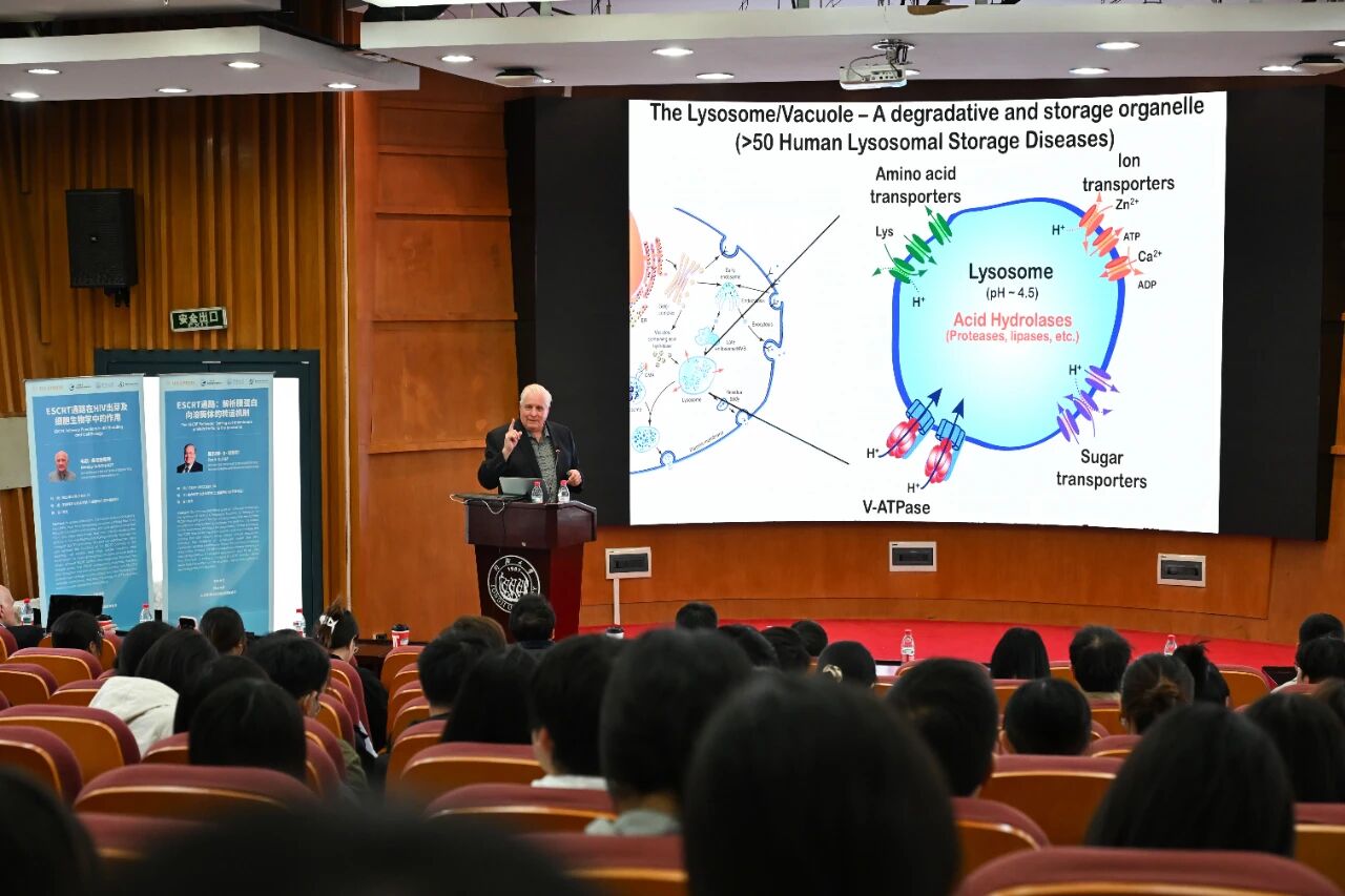 在题为《ESCRT通路:解析膜蛋白向溶酶体的转运机制》的报告中,埃默尔教授回顾了其团队发现ESCRT通路的科学历程。通过在酵母中筛选突变体,他的实验室首次鉴定出一系列参与蛋白质分选的VPS基因,并揭示了ESCRT-0至ESCRT-III复合物及ATP酶VPS4协同驱动膜重塑的分子机制。该系统能将膜蛋白准确“护送”至溶酶体降解,对理解细胞分裂、受体调控、病毒出芽等过程具有里程碑意义。埃默尔教授还指出,ESCRT功能异常与癌症、神经退行性疾病等密切相关,为疾病机理研究提供了重要线索。