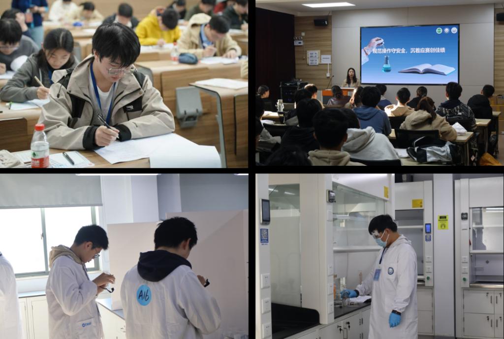 实验竞赛正式开考前,同济大学化学科学与工程学院专门开展安全培训。培训通过专题讲座、实操演示相结合的形式,系统讲解实验安全规范、危险试剂使用注意事项及应急处理流程,帮助选手强化安全意识、掌握防护技能,为赛事安全有序开展筑牢基础。