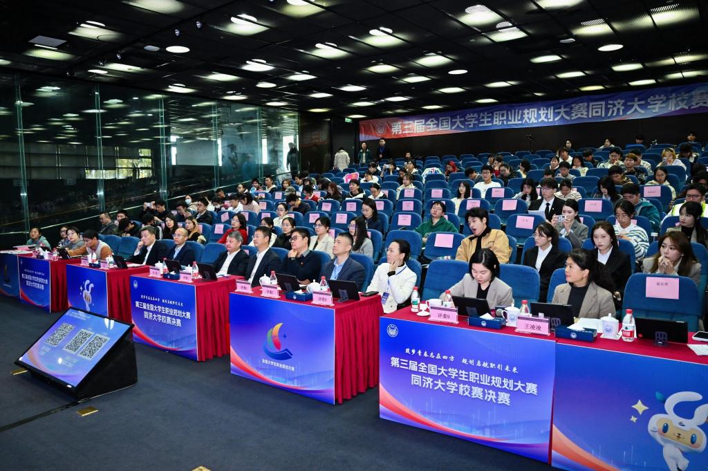 11月20日至21日,第三届全国大学生职业规划大赛同济大学校赛决赛在四平路校区举行,校党委副书记刘润出席并致辞。华中科技大学、重庆大学、四川大学、北京理工大学、华东理工大学、上海对外经贸大学等高校评委,中国商飞、中海集团、上海电气、长安汽车、中国电信、宝钢股份、中兴通讯、荣耀、中交集团等企业评委,及校党委学生工作部、本科生院、研究生院、校团委、学生就业指导中心等部门负责人出席活动。各学院师生近200人现场观摩学习并为选手加油。