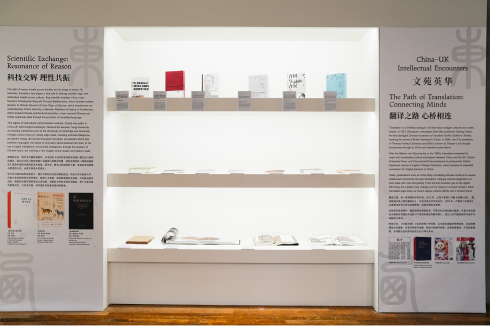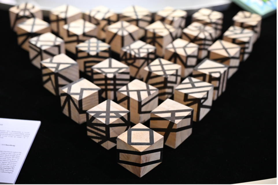 本次展览聚焦“汉字与字母的对话”,以“文苑英华”“翻开中国”“饰韵汉字”“汉字焕新”四个章节为主线,依托沉浸式空间、创意装置与设计作品,系统体现了汉字的文化底蕴与视觉张力,讲述文字如何作为文明载体在中英两国间架设理解与共鸣的桥梁。其中,“文苑英华”呈现汉字起源与演变,回望文字与中英人文交流的不解之缘;“翻开中国”聚焦汉字在当代书籍设计中的图文表达,展示字体与排版如何成为“打开中国”的文化钥匙;“饰韵汉字”则将汉字元素融入日常生活的服饰、饰品与工艺设计中,展现文字之美如何以具象形式延伸至生活细节;而“汉字焕新”面向未来,探索汉字在数字与交互语境下的共振轨迹。