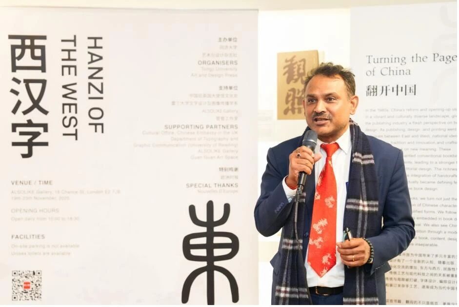 英国巴斯市前副市长、巴斯大学中英文语言翻译专业主任余德烁教授则以“黄金桥梁”喻汉字之于东西方文明。他表示,作为一名汉学家和翻译教育者,汉字不仅是研究对象,更是连接两种思维方式的桥梁。此次展览以精巧策划展现文字如何在日常生活、数字媒介、跨文化传播中不断演变与生长,成为中英观众对话与联结的视觉触点与情感共振。他衷心祝愿展览能成为许多人了解中国、爱上汉字的崭新起点。