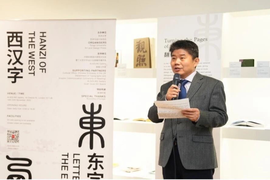 开幕式上,中国驻英国大使馆李立言公参在致辞中表示,文字是传承文明的载体,语言是增进理解的桥梁,中文不仅属于中国,也属于世界,是中国人民贡献给全人类的公共文化资产。此次展览是中英文化合作的交流成果,进一步拓展了文明对话的深度,响应习近平主席提出的“全球文明倡议”,以文化与创意为纽带,推动中英之间的文明互鉴与人文互动持续深化。