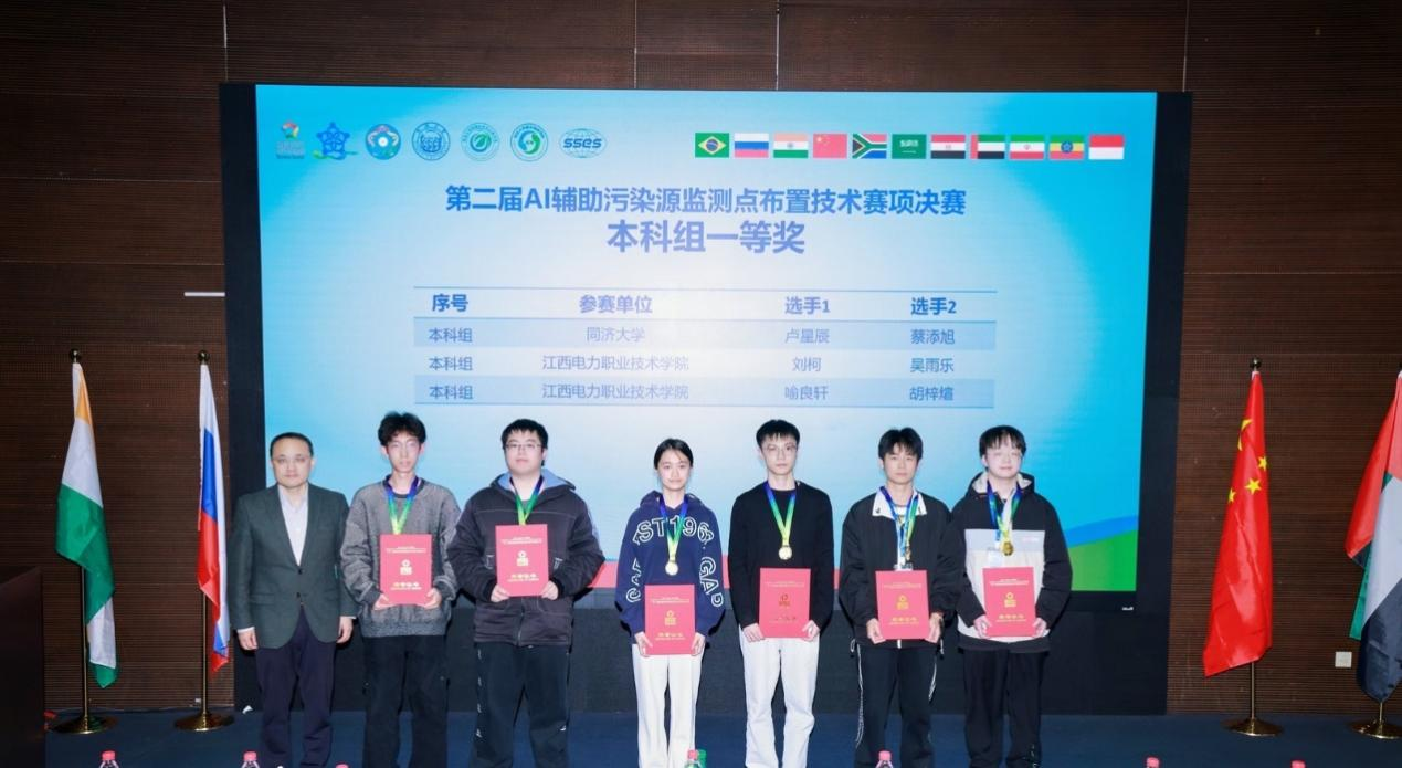 比赛中,160余名选手围绕AI技术在环境监测与智慧水务中的创新应用展开激烈角逐。经过裁判组的严格评审,共决出本科组、中职组、教师组一二三等奖,并颁发最佳组织奖、优秀组织奖、突出贡献奖等多个团体荣誉。同济大学环境科学与工程学院参赛团队凭借出色的综合实力和认真的全程准备,在本届大赛中荣获教师组一等奖1项,本科赛道一等奖1项和二等奖1项。
