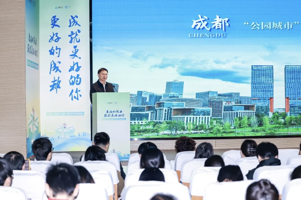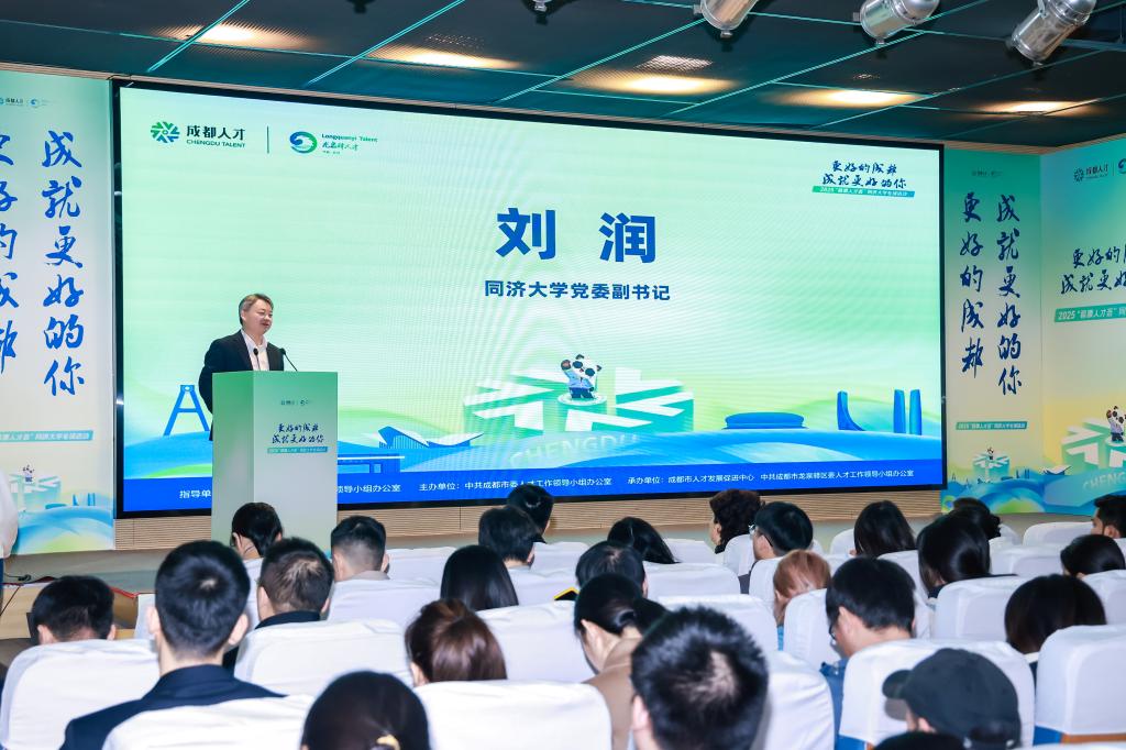 甘华田从人才政策供给、创新创业支持、人才暖心服务等多个维度,系统推介了成都市人才发展价值生态,详细介绍了引才的“蓉漂人才锦鲤计划”和育才的“蓉城英才锦程计划”等支持措施,向广大学子传递了成都助力人才“鱼跃龙门、前程似锦”的满满诚意。他诚挚邀请同济学子及八方英才,亲身感受成都拼搏奋进的创新创造氛围与宜居宜业的幸福美好生活,在这片热土上施展才华、实现梦想。