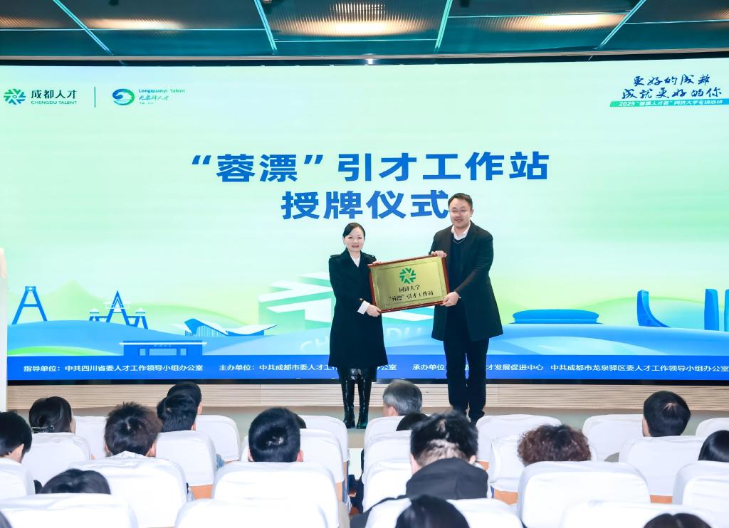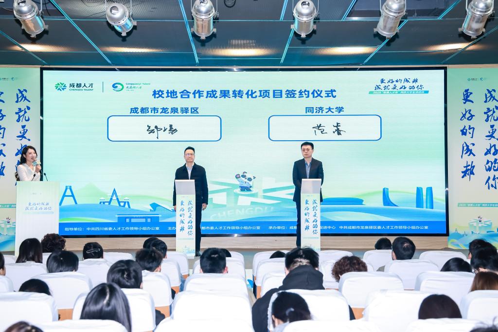 活动现场,成都市委人才办携手同济大学建立了“蓉漂”引才工作站,并举行授牌仪式。工作站将发挥招才引智“前哨站”、就业创业“信息站”、高校青年人才“服务站”作用,面向城市发展、产业发展等人才需求,开展人才和项目资源收集分析、城市发展环境推介、就业创业政策宣传等工作,实现引才关口前移、常态长效在校引才,建立校地合作新模式。龙泉驿区发布产业园区急需紧缺人才需求清单,举行了龙泉驿区与同济大学校地合作成果转化项目签约仪式,同济大学优秀毕业生岳乔上台分享了在校奋斗故事和在蓉工作生活经历。