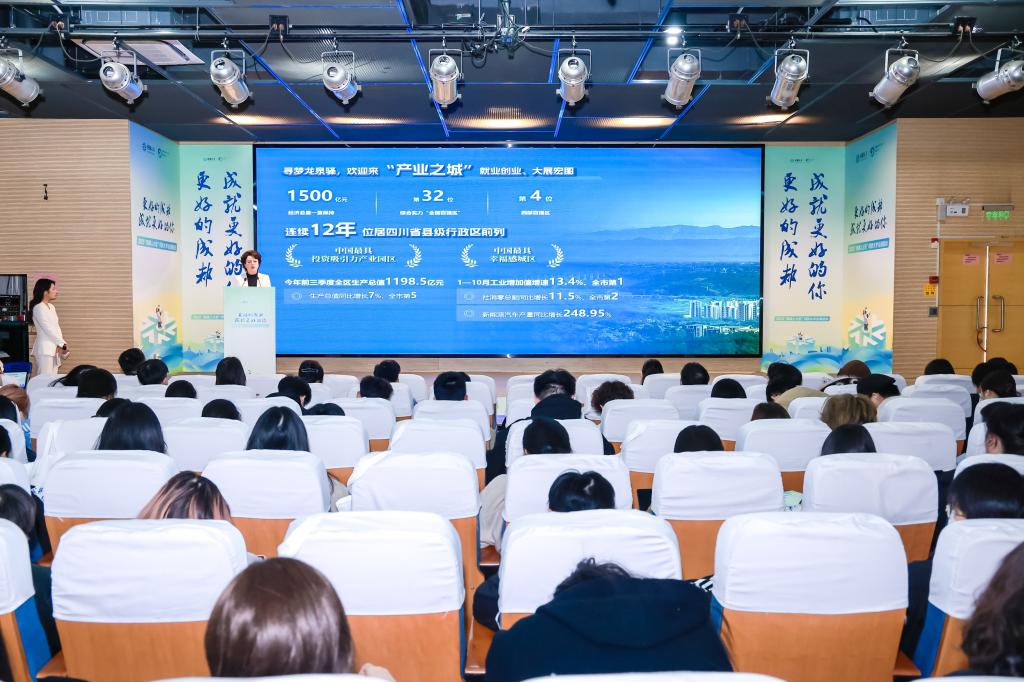 余雅宾详细介绍了龙泉驿区人才环境。她表示,龙泉驿倾力打造“近悦远来”的人才环境,建立完善的人才政策体系,诚挚欢迎各位青年才俊来到龙泉驿、扎根龙泉驿,与城市同发展、共成长。