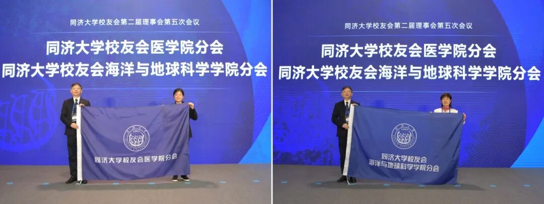 大会听取了同济大学校友会第二届理事会年度工作报告,审议通过了延期换届情况报告,并为新成立的同济大学校友会医学院分会、同济大学校友会海洋与地球科学学院分会授旗。