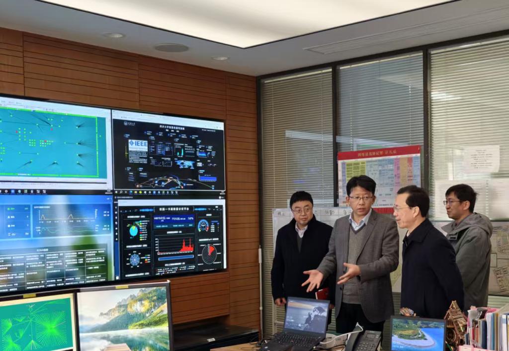 在信息化办公室,郑庆华来到网络运营中心,实地检查网络安全、设备运行及机房安全管理制度落实情况,详细询问日常运维、风险防控与应急响应措施。他强调,要时刻绷紧安全这根弦,筑牢校园网络安全屏障,确保信息系统稳定可靠运行。
