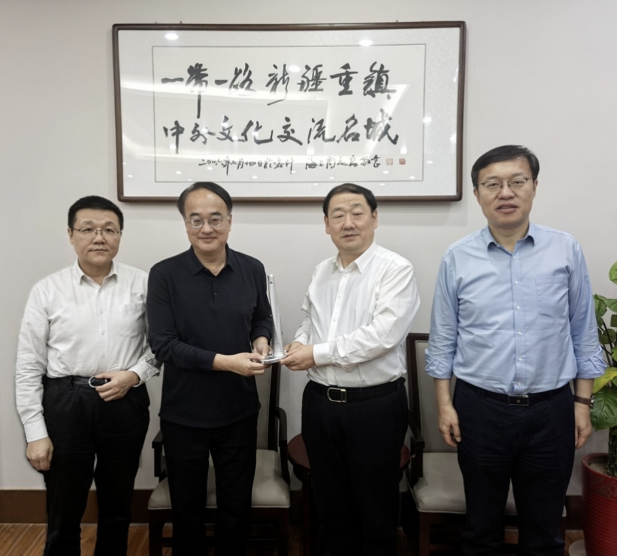 当天下午,石振明一行拜访了上海市对口支援新疆工作前方指挥部,同指挥部总指挥孟庆源,中共喀什地委委员、喀什地区行署常务副专员吴晓斌,喀什大学党委书记丁邦文,副总指挥王陈、毕桂平,喀什地区自然资源局党组书记、副局长黄湘柏等深入交流。双方一致赞成同济大学及其下属产业公司要紧跟上海援疆要求,倾力投入上海援喀什的各项规划建设工作中,在产业导入、智力支撑、科研合作等方面开展全面合作。