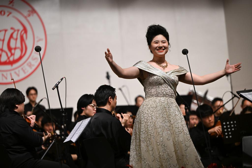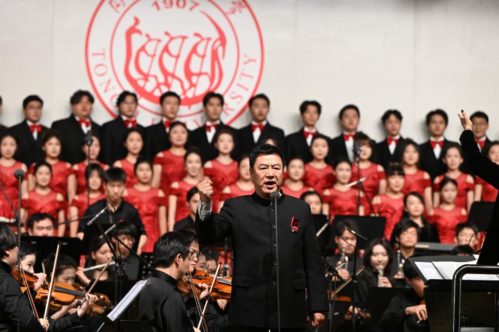 男声独唱京剧《贵妃醉酒》选段,女声独唱《帕米尔,我的家乡多么美》,交响合唱《美好新征程》《保卫黄河》,深情款款的歌声,唱出了同济师生对党、对祖国的赤诚,对美好生活的热爱,以及接续奋进“十五五”新征程的壮志豪情。台下观众凝神屏息静听,陶醉其中,热烈的掌声一次次响起。