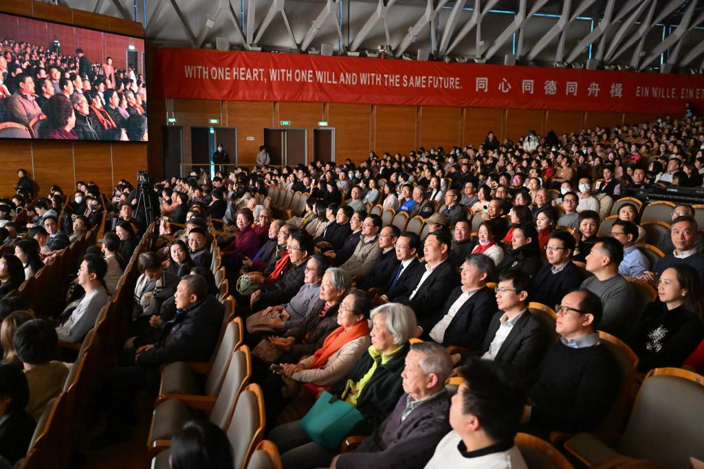 校党委书记、中国工程院院士郑庆华,校长、中国科学院院士杨金龙,校党委常务副书记朱小杰,杨浦区委常委、统战部部长董鑫旺,副校长石振明,校党委副书记刘润、曹静,校务委员会副主任、校党委原副书记吴广明等出席,与学校师生一道共赏音乐,共迎新年。
