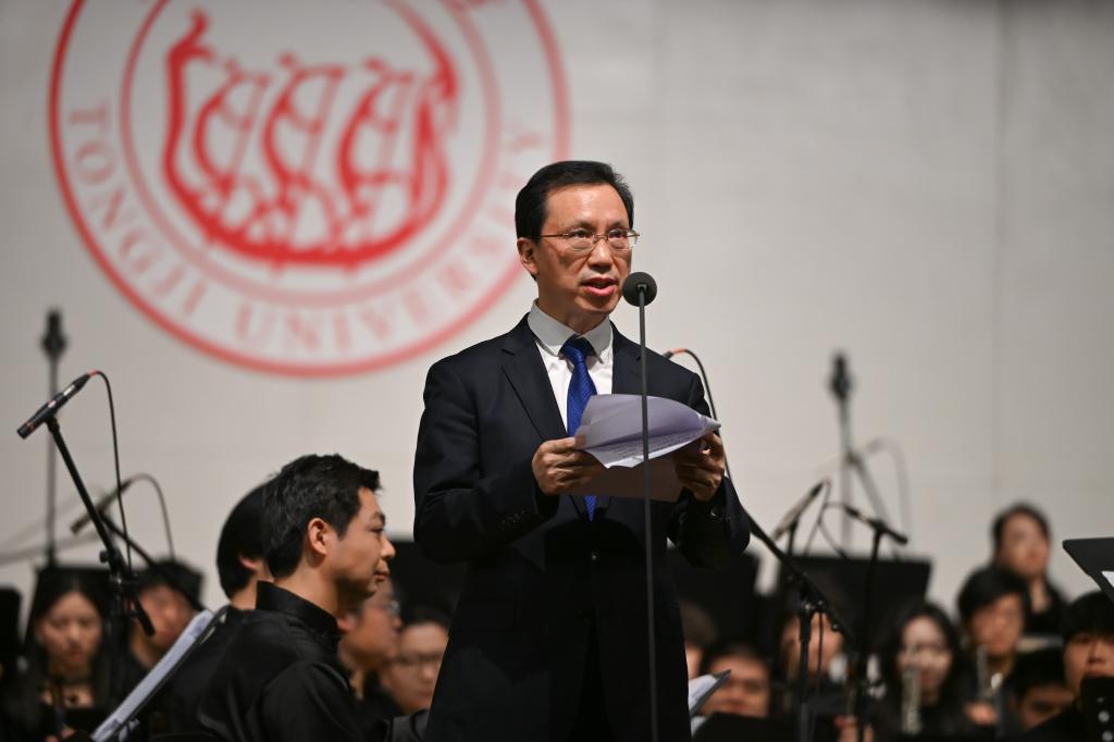 郑庆华在致辞中代表学校向全校师生员工、离退休老同志和海内外校友,以及长期关心和支持学校发展的社会各界人士致以诚挚的新年问候和美好的节日祝愿。他说,一年来,学校深入学习贯彻党的二十大和二十届历次全会精神,高质量完成“十四五”规划收官,科学擘画“十五五”发展蓝图,全面启动120周年校庆筹备工作。站在“十五五”规划开局的新起点,希望全体同济师生胸怀“国之大者”,持续深耕学科交叉融合和工程智能赋能,强化有组织科研和有组织培养拔尖创新人才,奋力谱写中国特色世界一流大学建设的崭新篇章,为教育强国、科技强国、人才强国建设注入更多同济力量。