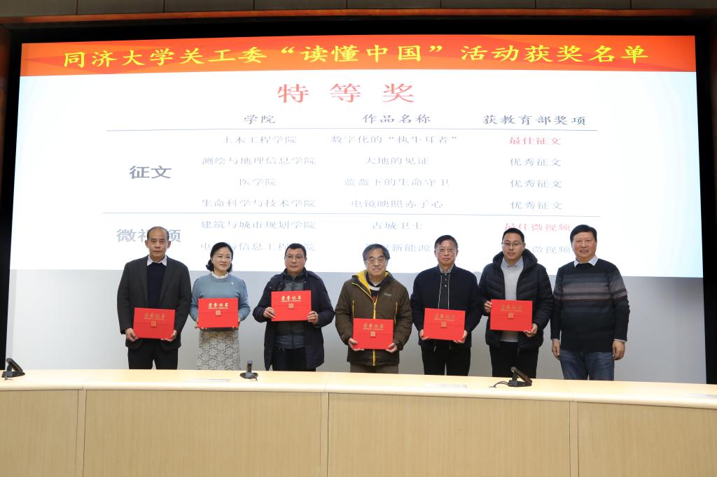 会议对2025年度“读懂中国”活动获奖的18个学院进行表彰。其中,同济大学上报教育部关工委的8项作品有6项获奖:土木工程学院《数字化的执牛耳者》获最佳征文,建筑与城市规划学院《古城卫士》获最佳微视频,医学院《蓝盔下的生命卫士》、测绘与地理信息学院《大地的见证》、生命科学与技术学院《电镜映照赤子心》获优秀征文,电子与信息工程学院《驾驭新能源》获优秀微视频。同济大学获奖数在全国高校中名列前茅,校关工委也再次获得优秀组织奖。与会者们现场观摩了《古城卫士》微视频。