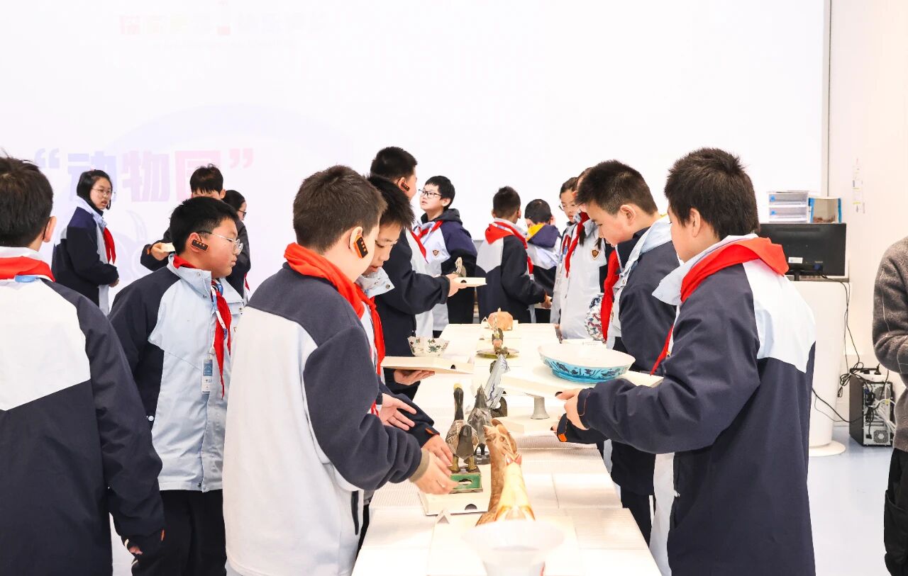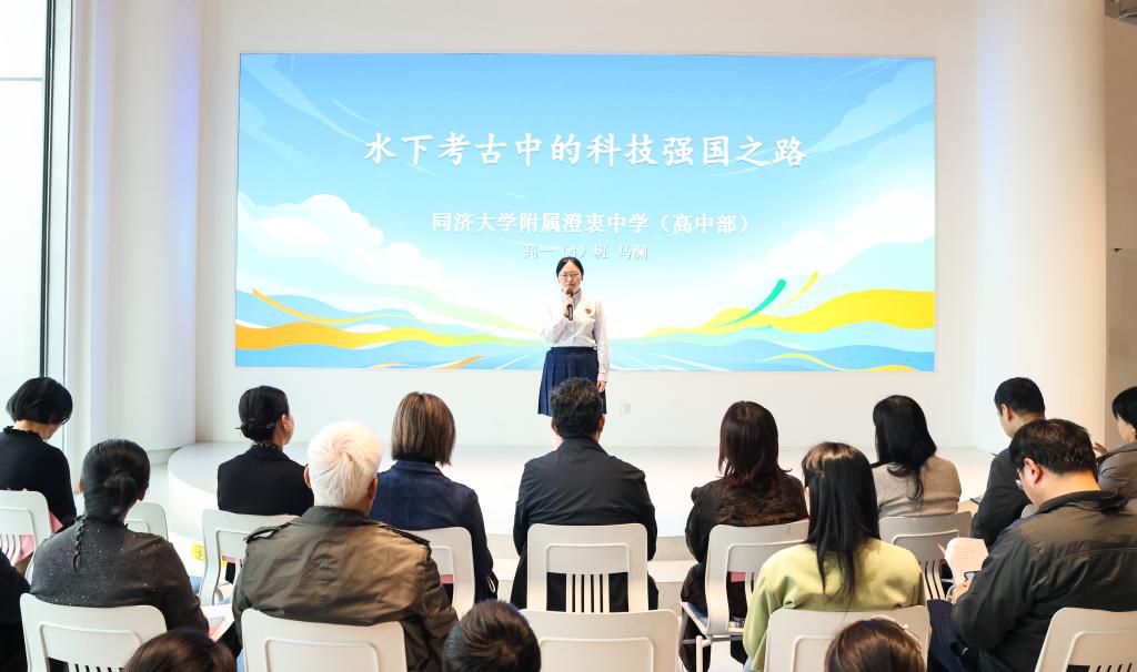 课堂之上,精彩纷呈。来自同济大学的同学带来了“文化守护者”的微宣讲。附属新江湾城实验学校的学生借助显微镜和CT机,为文物“体检”,展示文物碎片(复制品)鉴定与修复的实践过程。附属澄衷中学的学生现场示范“宋代叉手礼”,还解密了长江口二号古船打捞过程,展现现代科技对历史文物的强大保护力。