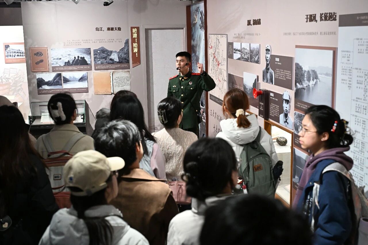 师生们一同参观了由中共一大纪念馆和遵义会议纪念馆联合推出的“万水千山只等闲——纪念中国工农红军长征胜利90周年”专题展。展览分为“江河·奔腾的意志”“草地·潜伏的希望”“重山·不屈的丰碑”三大篇章,生动再现长征途中的关键战役与艰难险阻,讴歌中国工农红军“革命理想高于天”的坚定信念和“红军不怕远征难”的英雄气概。