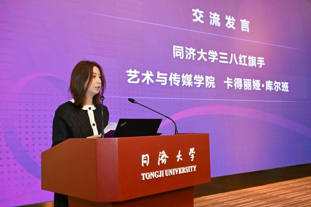 在交流发言环节,上海市三八红旗手标兵提名奖获得者、同济大学国家海底科学观测系统项目办公室杨群慧教授从心怀家国、不畏艰险,下潜深海开展海洋科考;敢为人先、攻坚破难,投身海底科学观测网建设;潜心育人、培根铸魂,培养海洋事业接班人三个方面讲述了“我和海洋的故事”。上海市教育系统第四届最美家庭代表建筑与城市规划学院杨春侠教授分享了家庭建设的心得体会,求同存异和谐相处的家庭之道、互相扶持分工协作的夫妻之道、倾听理解耐心陪伴的母子之道,以及“小满即圆满”的人生态度,充满温暖和智慧。校三八红旗手、艺术与传媒学院卡得丽娅·库尔班老师分享了自己的工作体会,在舞台指挥中传递同济精神与时代脉搏的同频共振,在育人中将艺术与传媒学院的专业特色与学校“扎根中国大地办大学”的理念相结合,奏响属于新时代同济女性的乐章。校三八红旗集体代表、校医院大内科护理组代表季思思介绍了团队17位姐妹用女性独有的细腻、坚韧与温柔,打磨专业技能,坚守初心使命,用专业的照护守护师生健康,用温暖的陪伴传递医者仁心的事迹。
