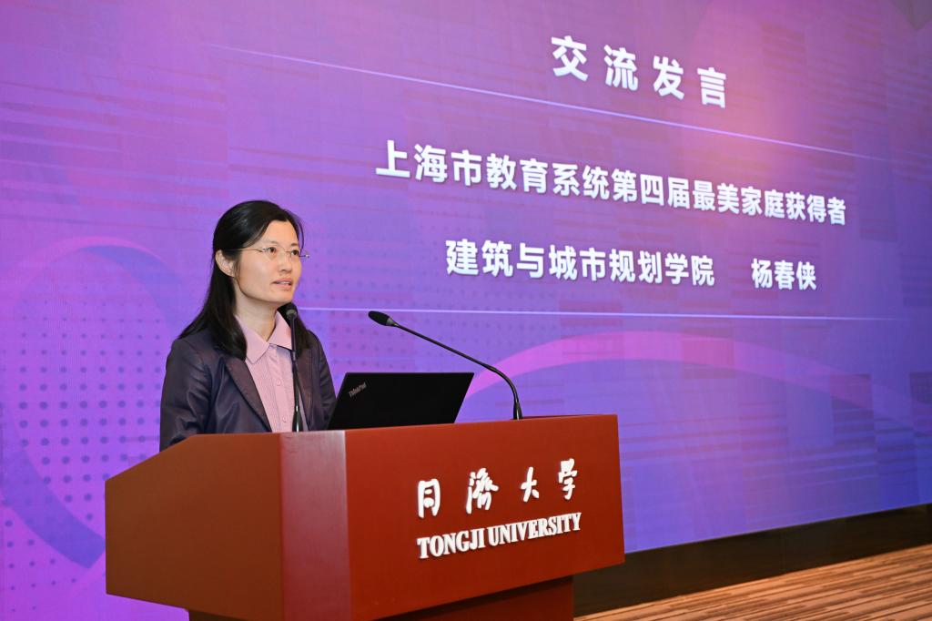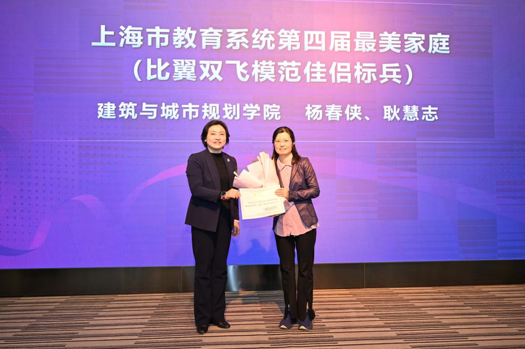 大会为先进个人和集体颁奖。同济大学国家海底科学观测系统项目办公室杨群慧教授荣获上海市三八红旗手标兵提名奖;建筑与城市规划学院杨春侠、耿慧志教授家庭被评为上海市教育系统第四届最美家庭(比翼双飞模范佳侣标兵);建筑与城市规划学院张晓春、李翔宁教授被评为上海市教育系统第十五届比翼双飞模范佳侣;人文学院朱静宇、栾梅健教授荣获上海市教育系统第十五届比翼双飞模范佳侣提名奖;冯甜甜等15位女教师被评为同济大学三八红旗手;材料科学与工程学院电化学储能材料与器件团队等8个集体被评为同济大学三八红旗集体;刘莉君、刘杰家庭等10个家庭被评为同济大学阖家齐飞模范家庭。
