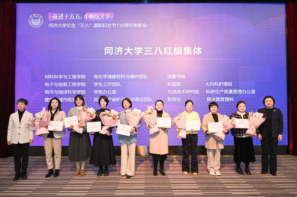 3月6日,同济大学纪念“三八”国际妇女节116周年暨“奋进‘十五五’巾帼绽芳华”表彰会举行。会议表彰了2025年度获得各级各类荣誉的先进个人和集体。校党委副书记曹静出席表彰会并致辞。受到表彰的女教职工个人和集体代表、校妇委委员及相关职能部门负责人、各单位妇女工作分管领导及妇女干部代表和女教师、学生代表等参加大会。