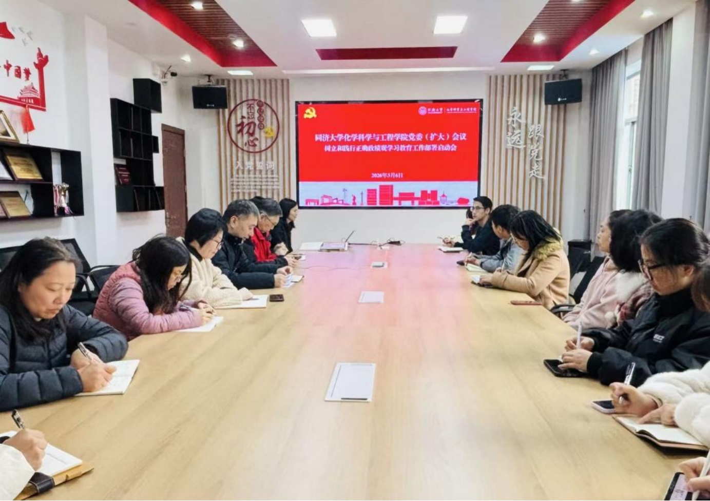 3月6日,化学科学与工程学院召开党委会(扩大)会议,深入学习贯彻习近平总书记关于树立和践行正确政绩观学习教育的重要讲话和重要指示精神,传达学习中央党的建设工作领导小组会议、教育部党组及学校党委相关会议精神,对全院开展学习教育进行全面动员和系统部署。学院领导班子成员、两委委员和党支部书记等参加会议。