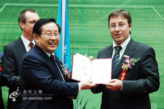 当天,同济大学授予联合国副秘书长、联合国环境规划署执行主任施泰纳名誉教授称号。与此同时,由联合国环境署和国家环保总局联合主办的“创新与可持续发展国际论坛”,在同济大学嘉定校区举行。