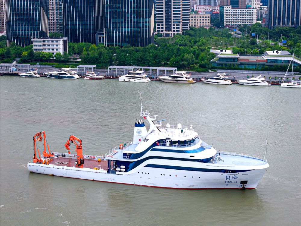 新华社客户端上海7月13日电(记者 张建松)“5、4、3、2、1,启动!”13日,在上海北外滩国际客运中心码头,我国自主设计建造的同济大学2000吨级智能海洋科考船“同济”号交付。