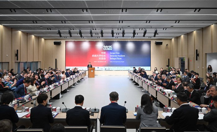 10月17日,以“智能时代的工程教育与全球合作”为主题的2025中欧卓越大学校长对话会在同济大学举行。来自中国、德国、法国等国家的45所高水平大学校长、副校长,以及知名企业代表、国际知名学者齐聚,共同探讨智能时代中欧工程教育合作的未来。
