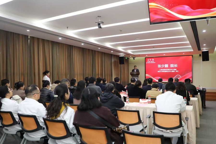 静安区闸北中心医院院长张少觐致欢迎辞,代表医院班子及全体职工向莅临仪式的各位领导、兄弟单位代表等,表示热烈欢迎和诚挚感谢,并阐述了此次合作对闸北中心医院创建三级医院、筹建同济大学附属医院、建设高质量发展区域医疗中心的里程碑意义。