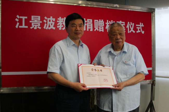 同济大学原校长江景波向学校捐赠档案
